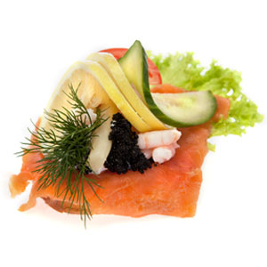 5. Røget laks m/ peberrodscreme og rejer